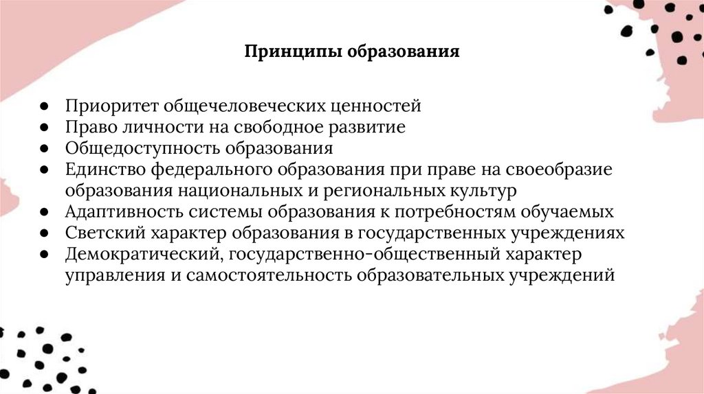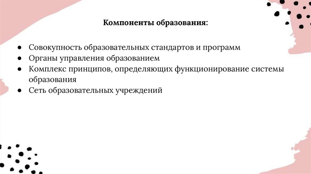 Компоненты образования:● Совокупность образовательных стандартов и программ