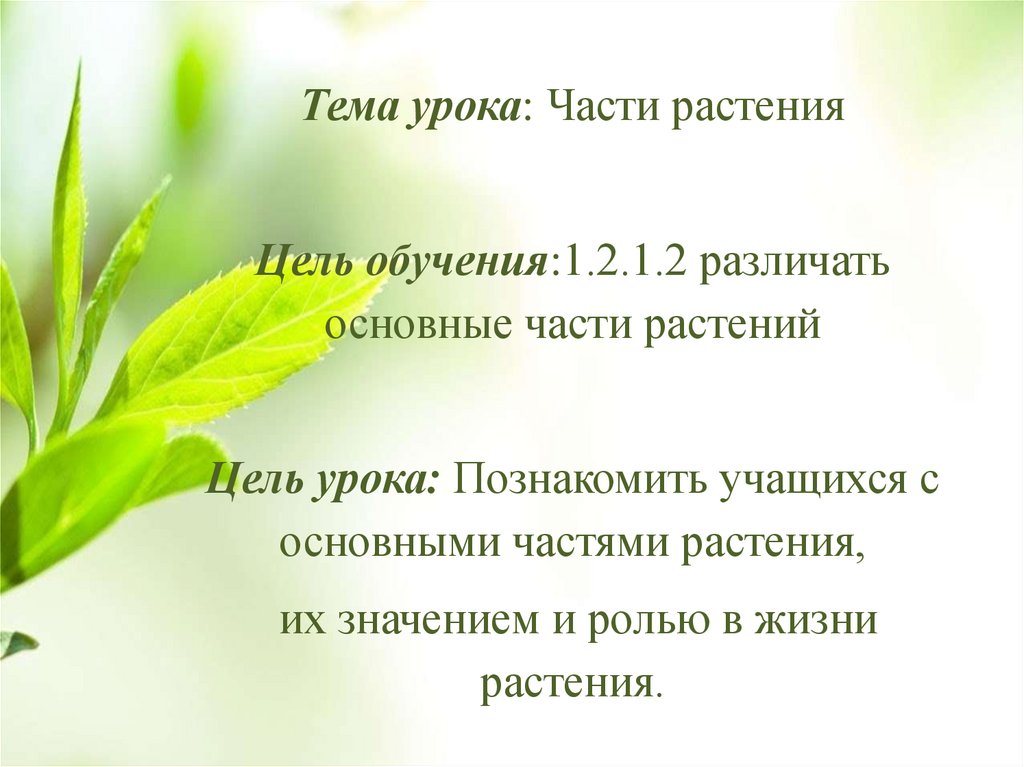 Тема урока: Части растенияЦель обучения:1.2.1.2 различать