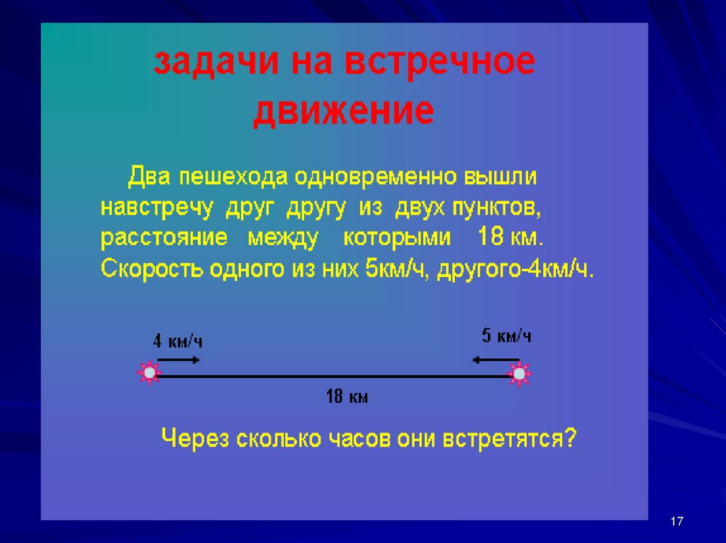 2). 17 * 3 = 51 (км ) – на такое расстояние первый