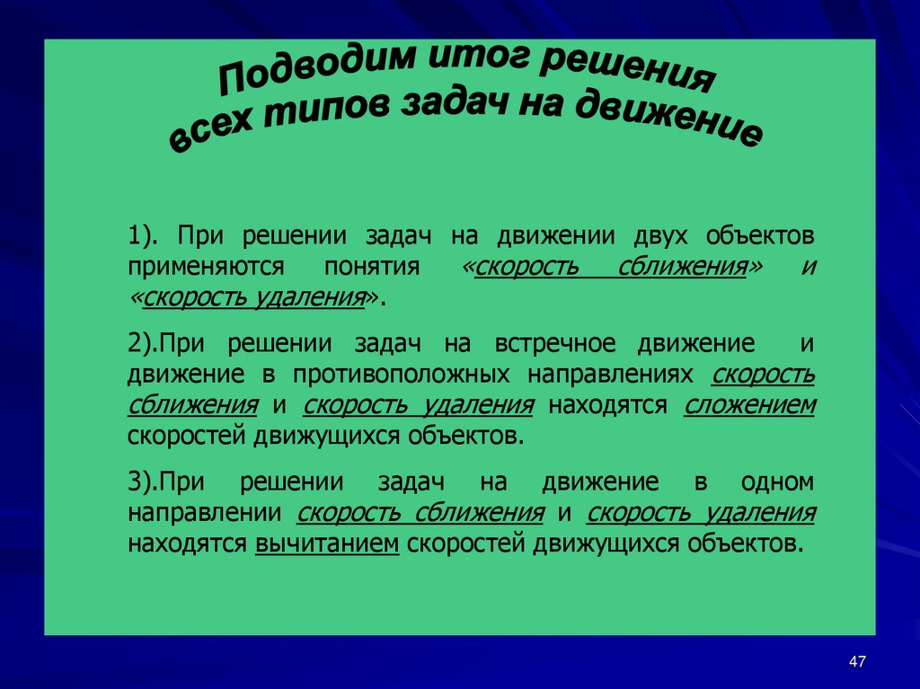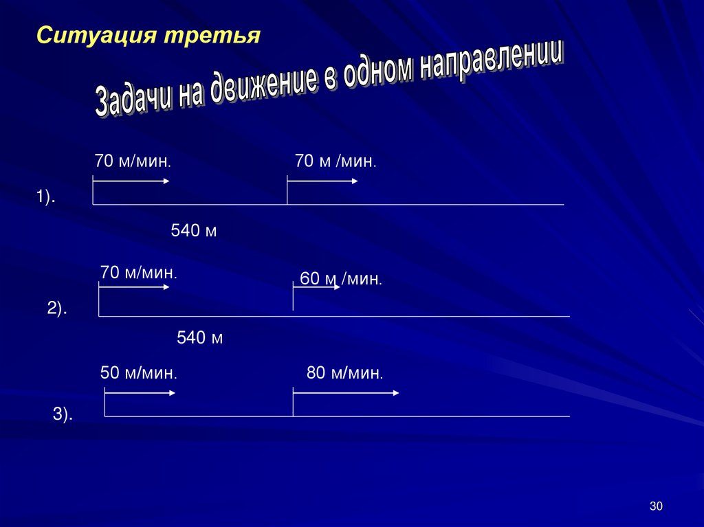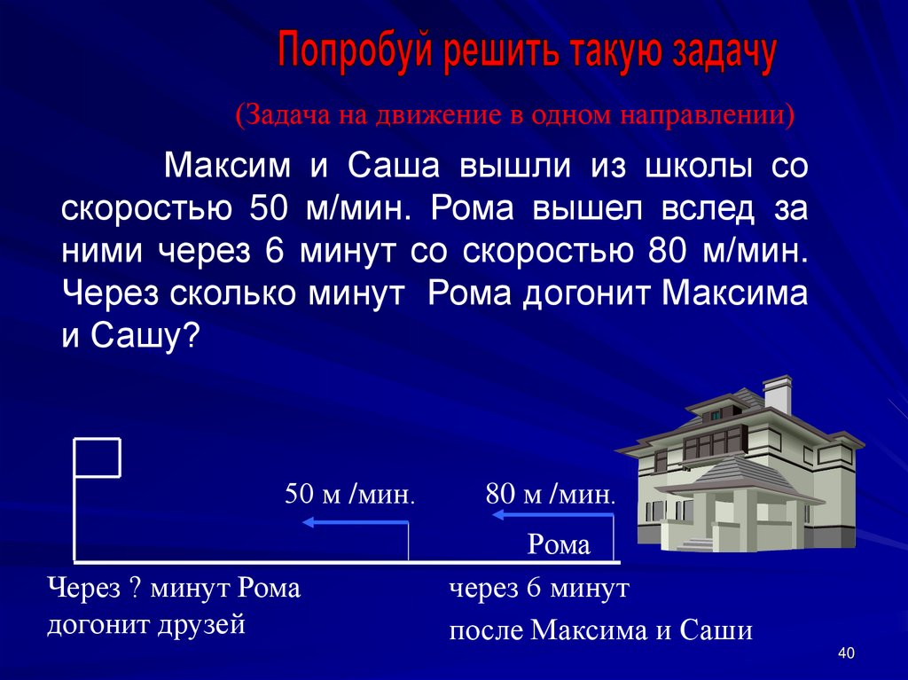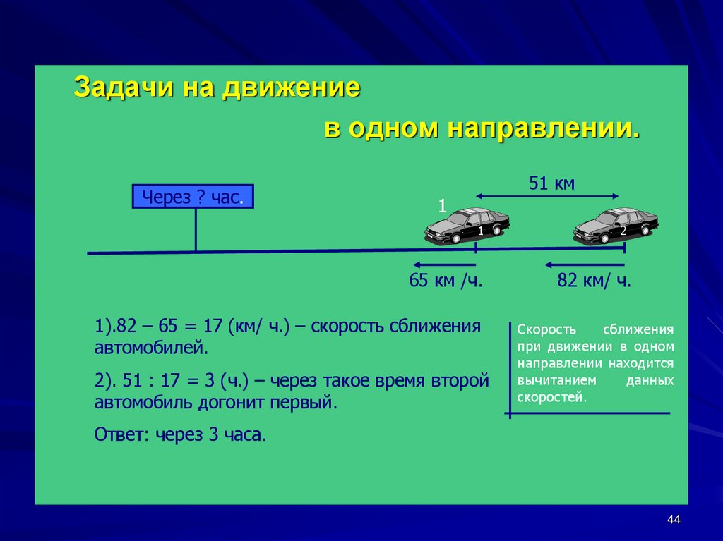 1).В задачах на движение в одном направлениипри одновременном начале движения объектов