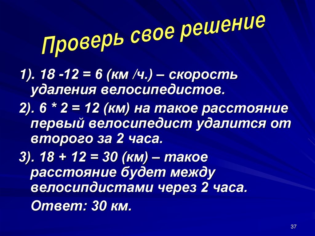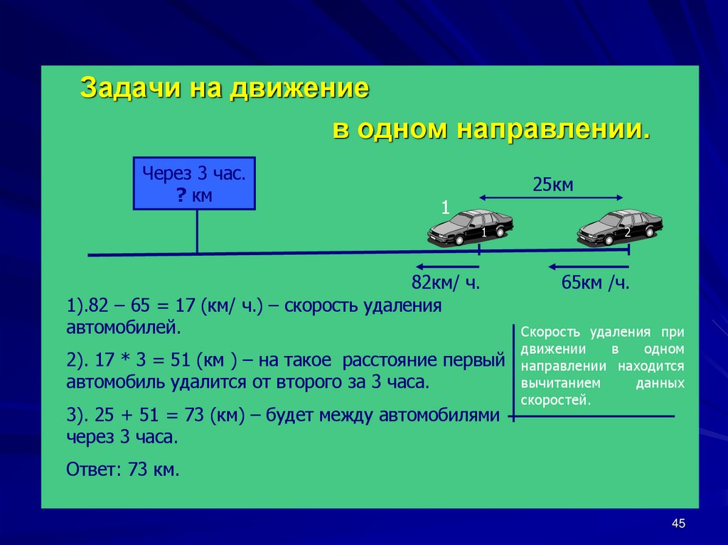 1).82 – 65 = 17 (км/ ч.) – скорость удаления