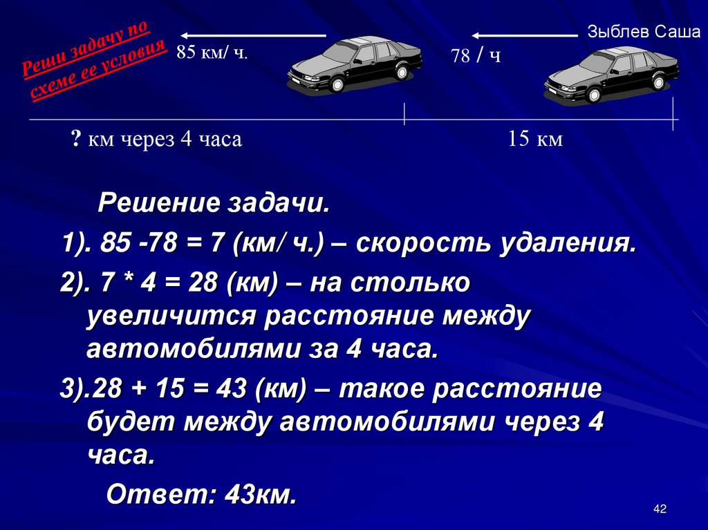 1). 85 -78 = 7 (км/ ч.) – скорость удаления.