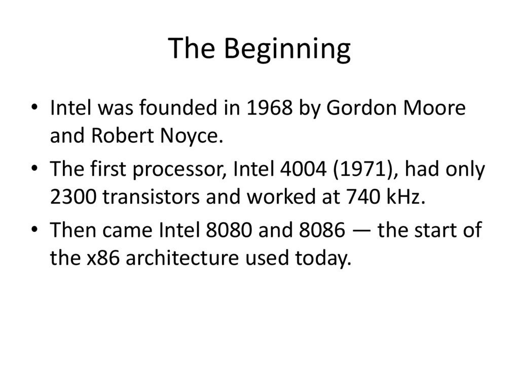 The Beginning• Intel was founded in 1968 by Gordon Moore