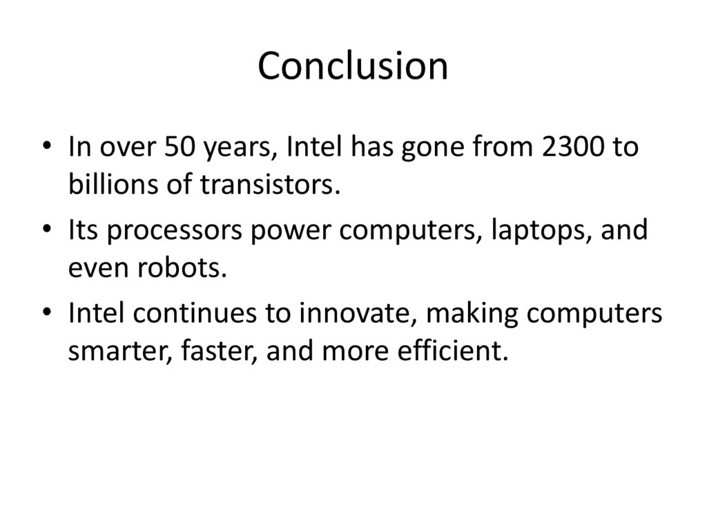 Conclusion• In over 50 years, Intel has gone from 2300 to