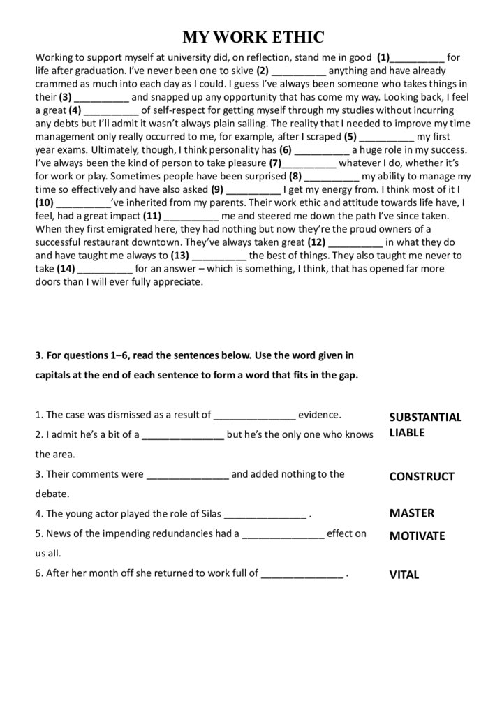 MY WORK ETHICWorking to support myself at university did, on reflection, stand me in good (1)__________ for