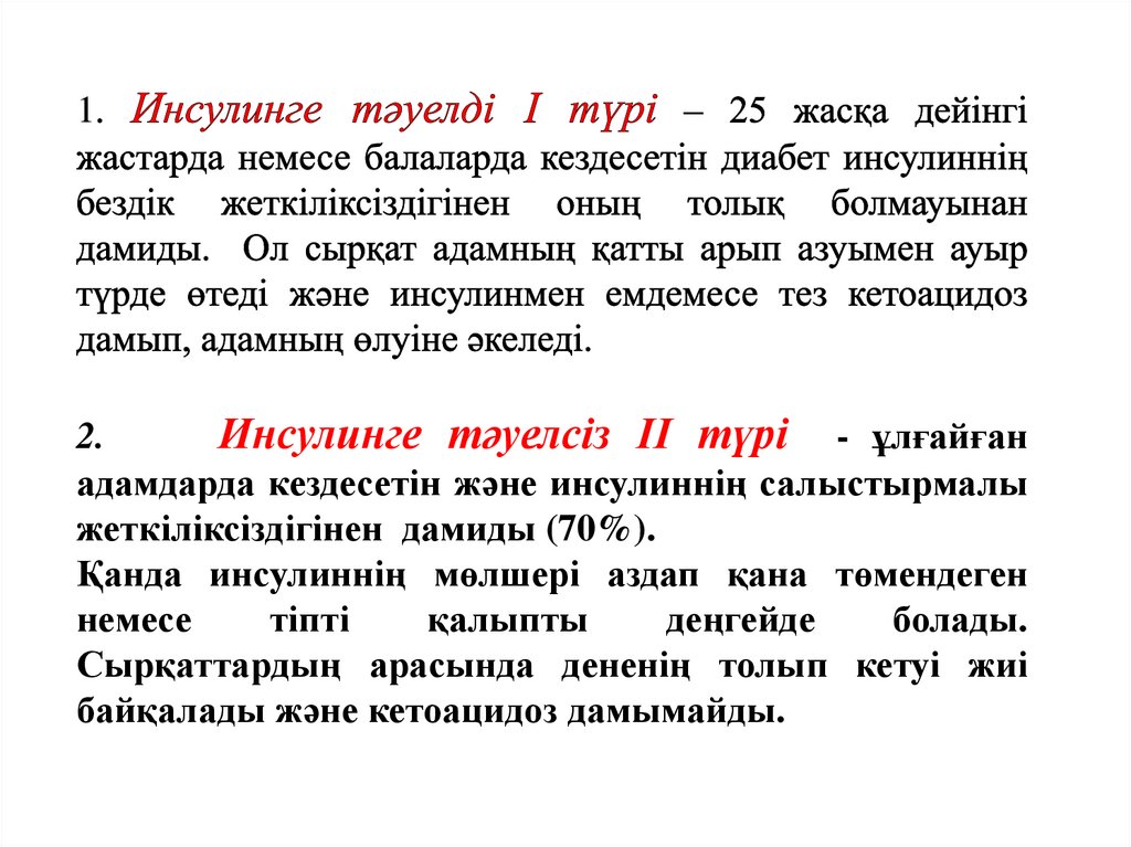 Қант диабеті – инсулиннің (абсолюттіжәне салыстырмалы) жетіспеушілігінің