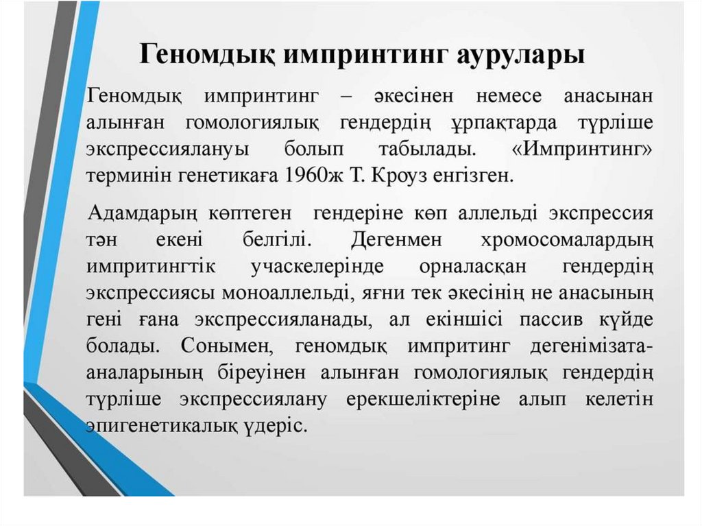 • Этиологиясы, патогенезі – Ангелман синдромы геномның классикалық мысалы болып