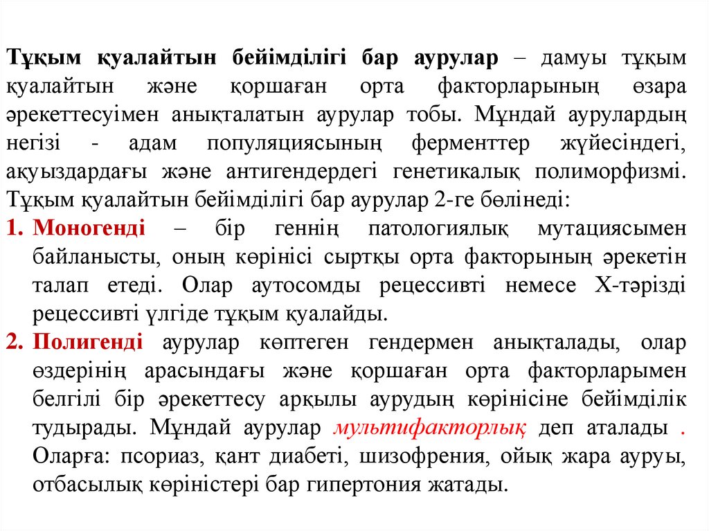 Тұқым қуалайтын бейімділігі бар аурулар 2-ге бөлінеді: