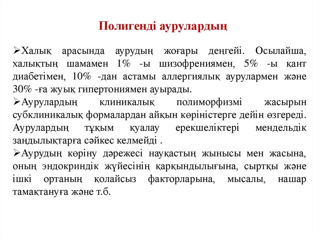 2. Полигенді аурулар көптеген гендермен анықталады, олар