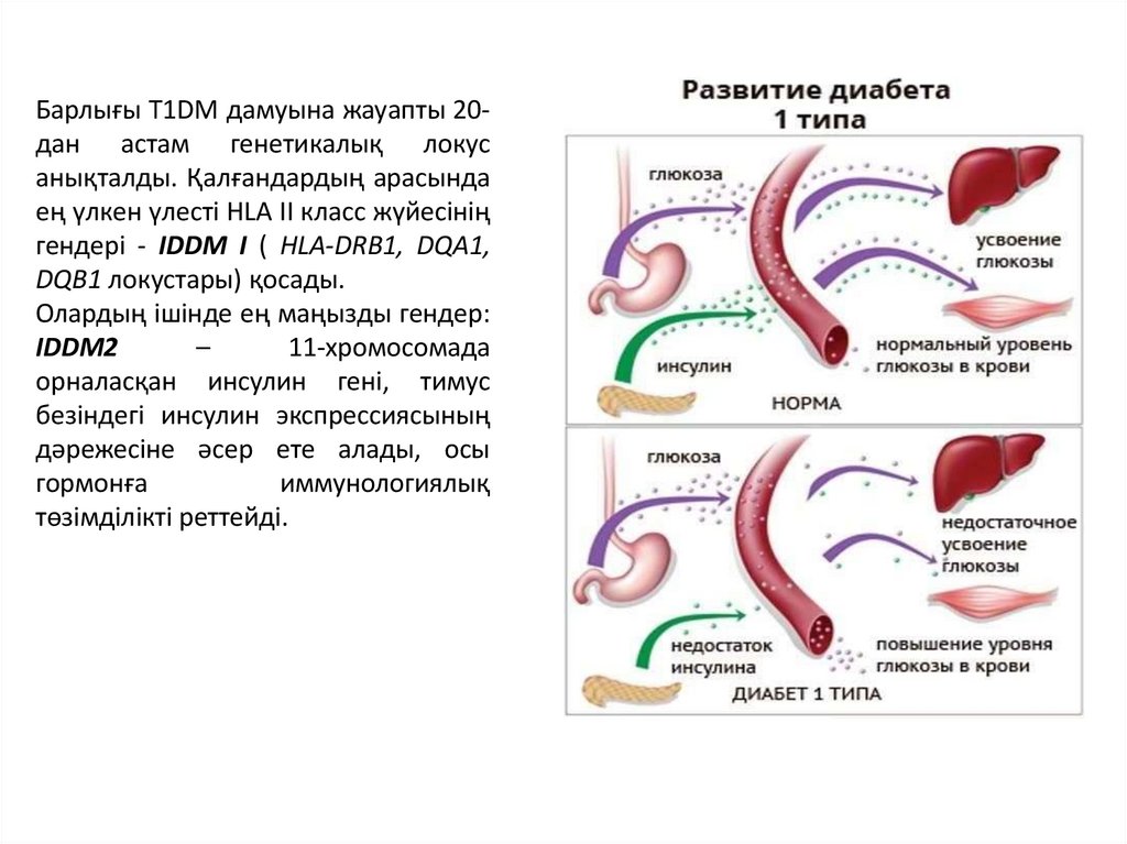 Барлығы T1DM дамуына жауапты 20дан астам генетикалық локусанықталды. Қалғандардың арасында