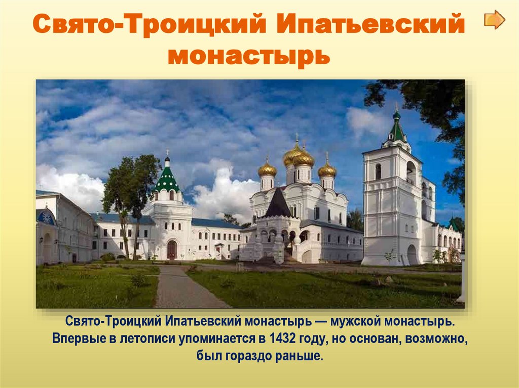 Свято-Троицкий Ипатьевский монастырь — мужской монастырь.