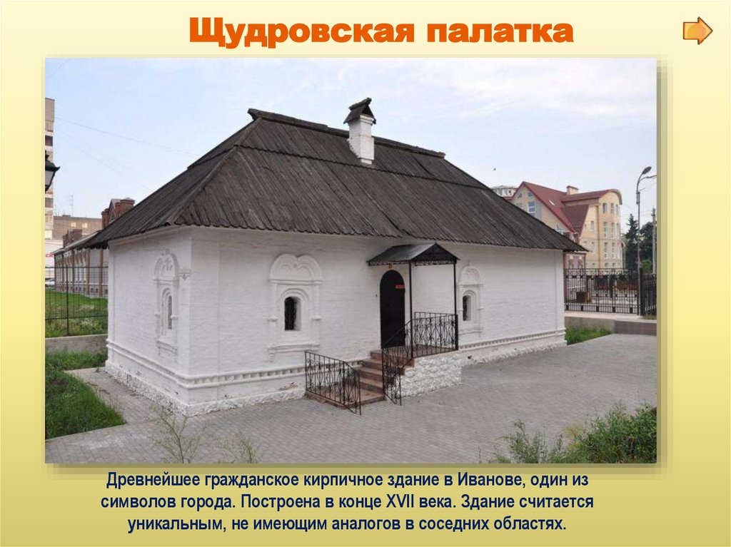 Щудровская палаткаДревнейшее гражданское кирпичное здание в Иванове, один из