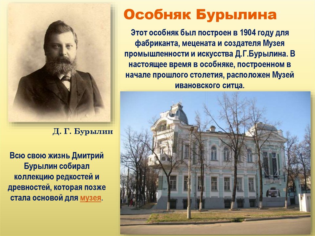промышленности и искусства Д.Г.Бурылина. В