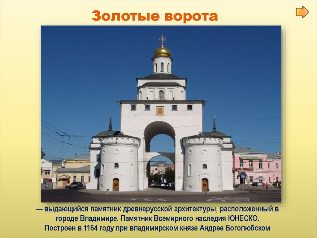 Золотые ворота— выдающийся памятник древнерусской архитектуры, расположенный в