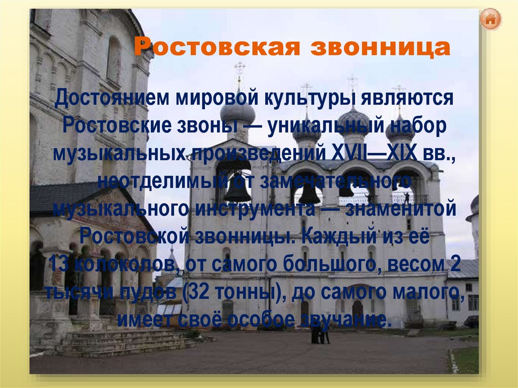 Ростовская звонницаДостоянием мировой культуры являются