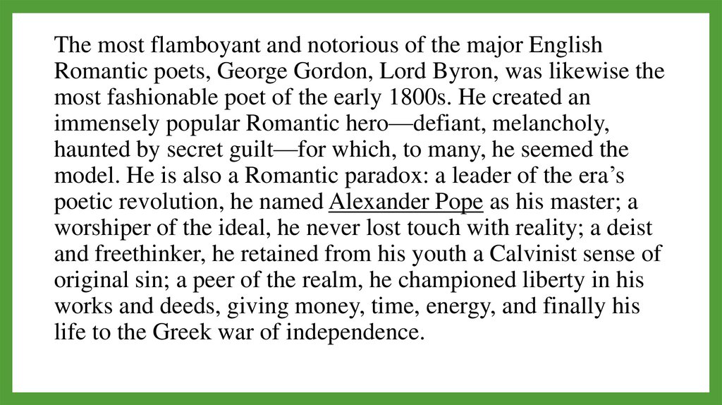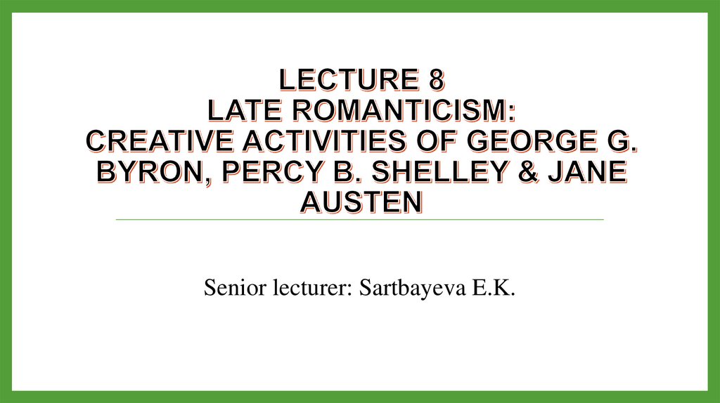 1. Lecture 8 Late Romanticism: Creative Activities of George G. Byron, Percy B. Shelley & Jane Austen