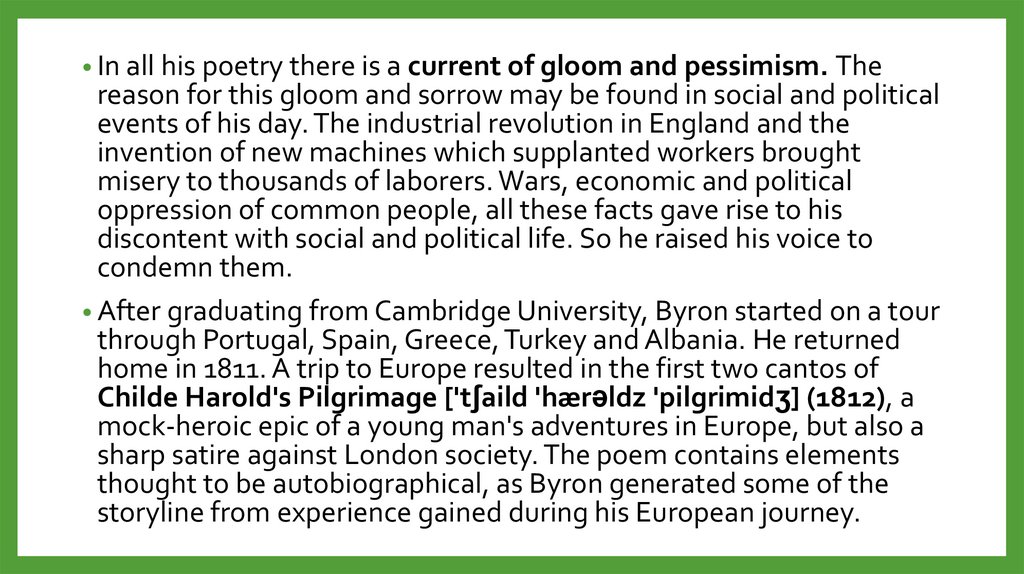 • 2.1. Byron’s poem “Childe Harold’s Pilgrimage”: genre, plot,