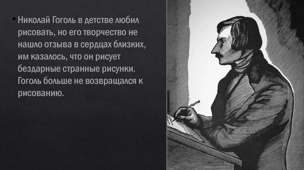 Николай Гоголь в детстве любилрисовать, но его творчество не