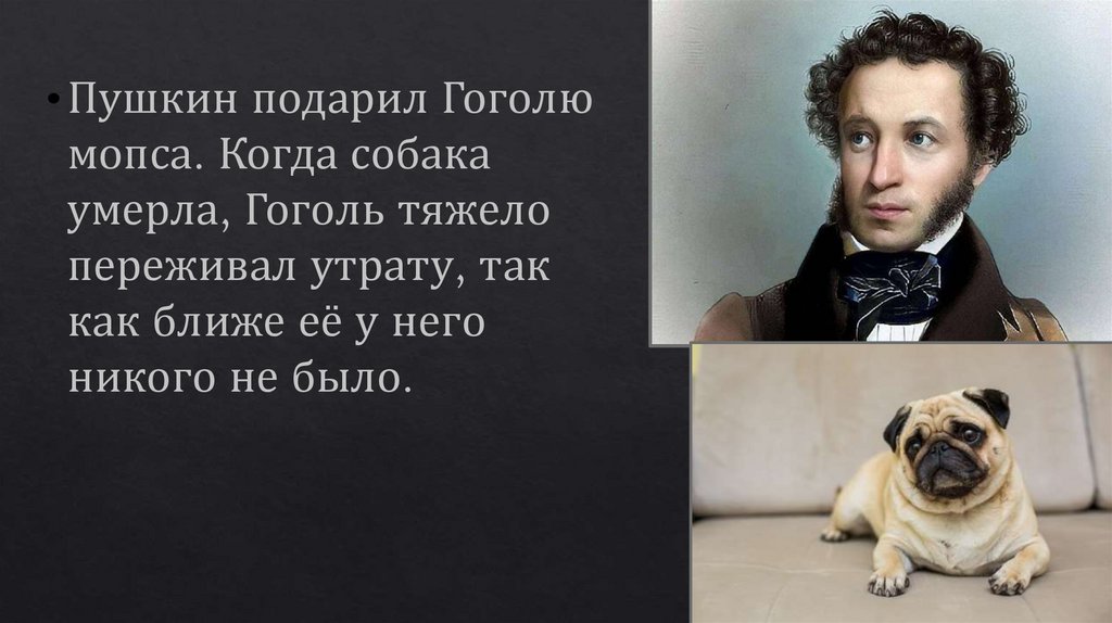 Пушкин подарил Гоголюмопса. Когда собака