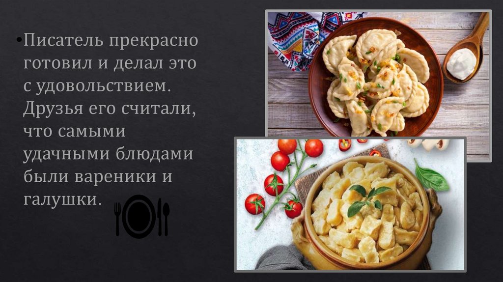 Писатель прекрасноготовил и делал это