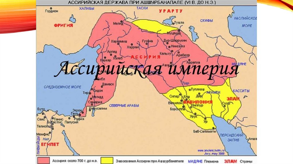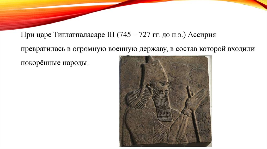 При царе Тиглатпаласаре III (745 – 727 гг. до н.э.) Ассирияпревратилась в огромную военную державу, в состав которой входили
