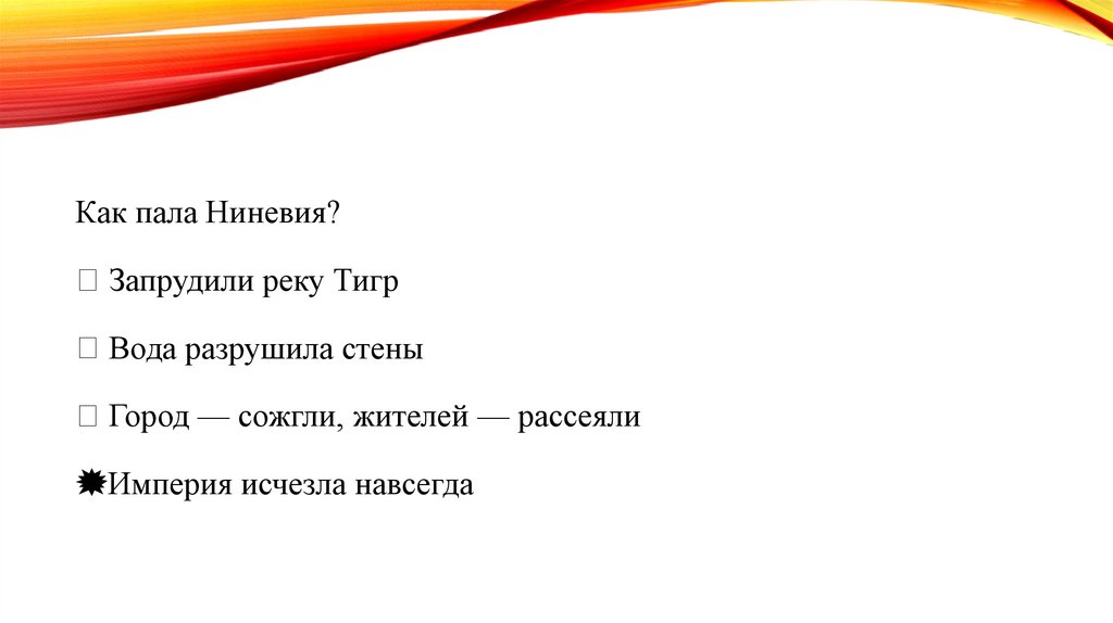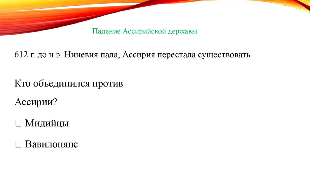 Падение Ассирийской державы612 г. до н.э. Ниневия пала, Ассирия перестала существовать