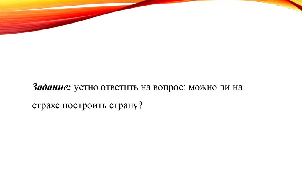 Задание: устно ответить на вопрос: можно ли настрахе построить страну?