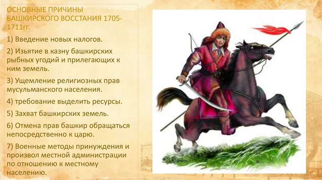 ОСНОВНЫЕ ПРИЧИНЫБАШКИРСКОГО ВОССТАНИЯ 17051711гг.