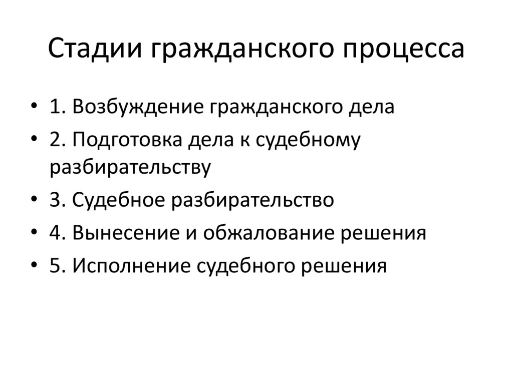 Стадии гражданского процесса• 1. Возбуждение гражданского дела