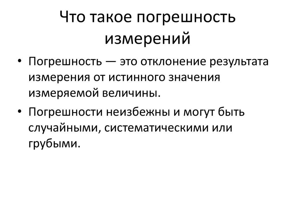 • Погрешность — это отклонение результата