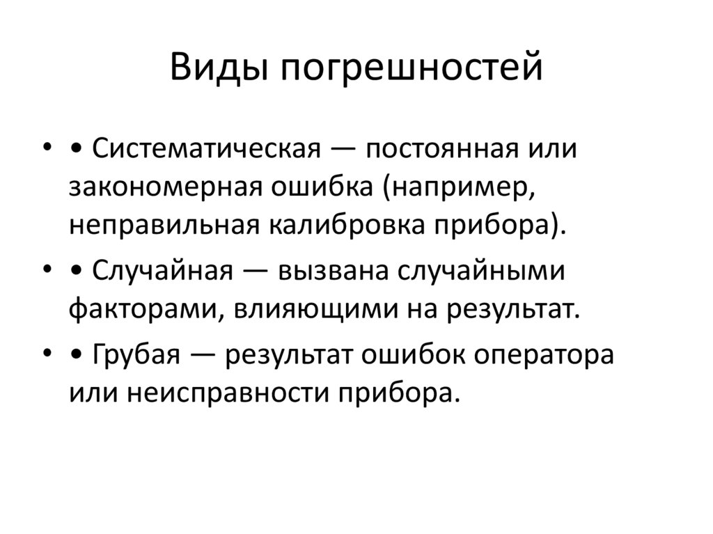 Виды погрешностей• • Систематическая — постоянная или