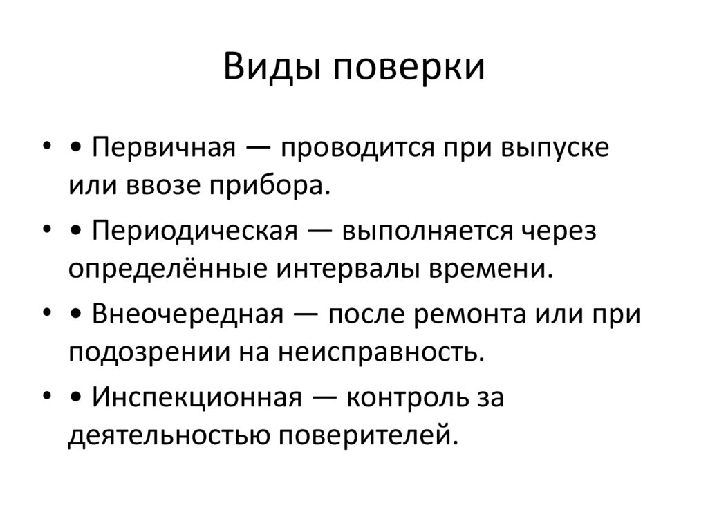 Виды поверки• • Первичная — проводится при выпуске