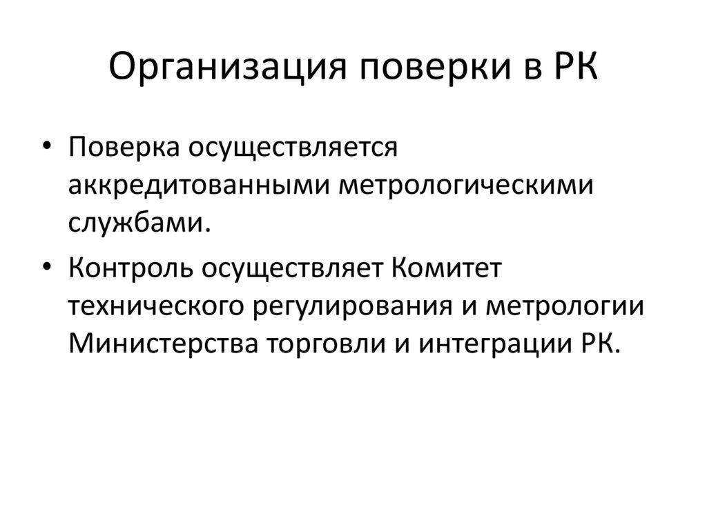 Организация поверки в РК• Поверка осуществляется