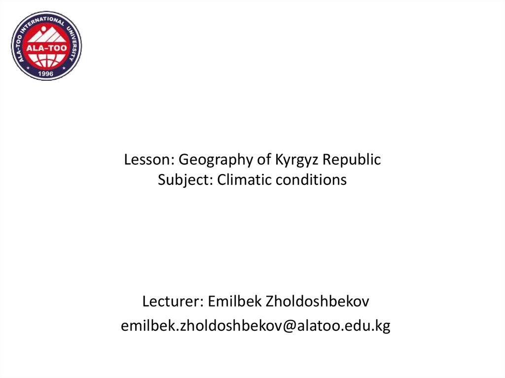 1. Lesson: Geography of Kyrgyz Republic Subject: Climatic conditions