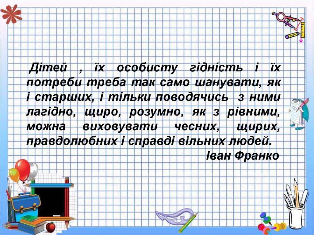 Дітей , їх особисту гідність і їхпотреби треба так само шанувати, як