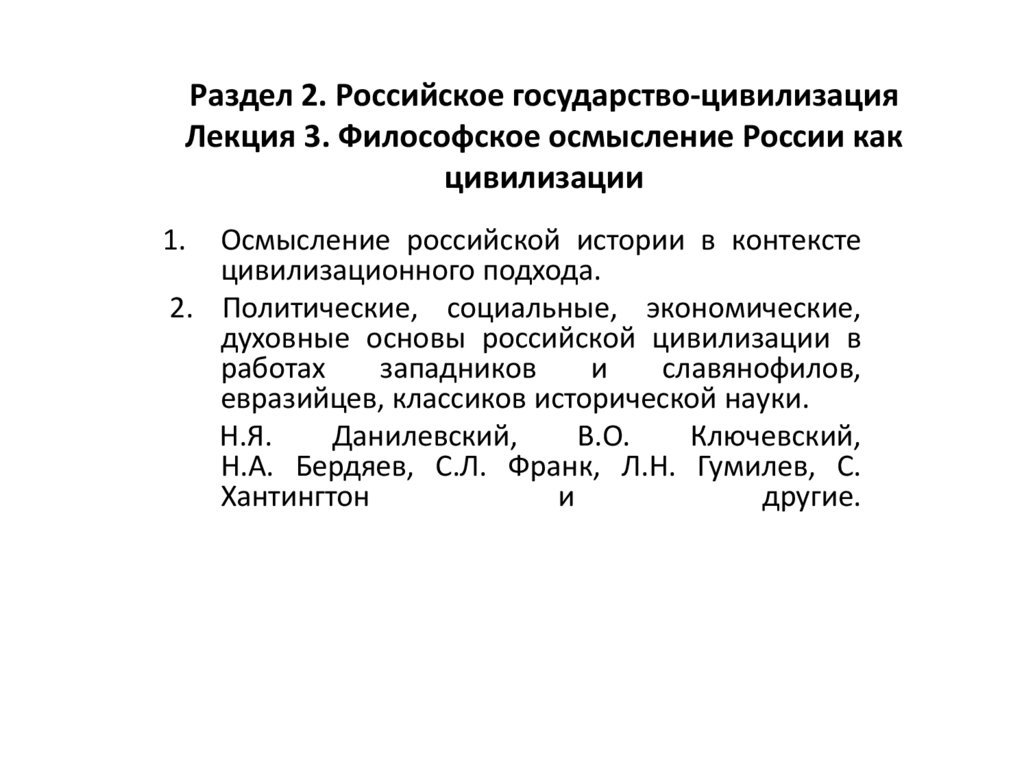 1. Раздел 2. Российское государство-цивилизация Лекция 3. Философское осмысление России как цивилизации