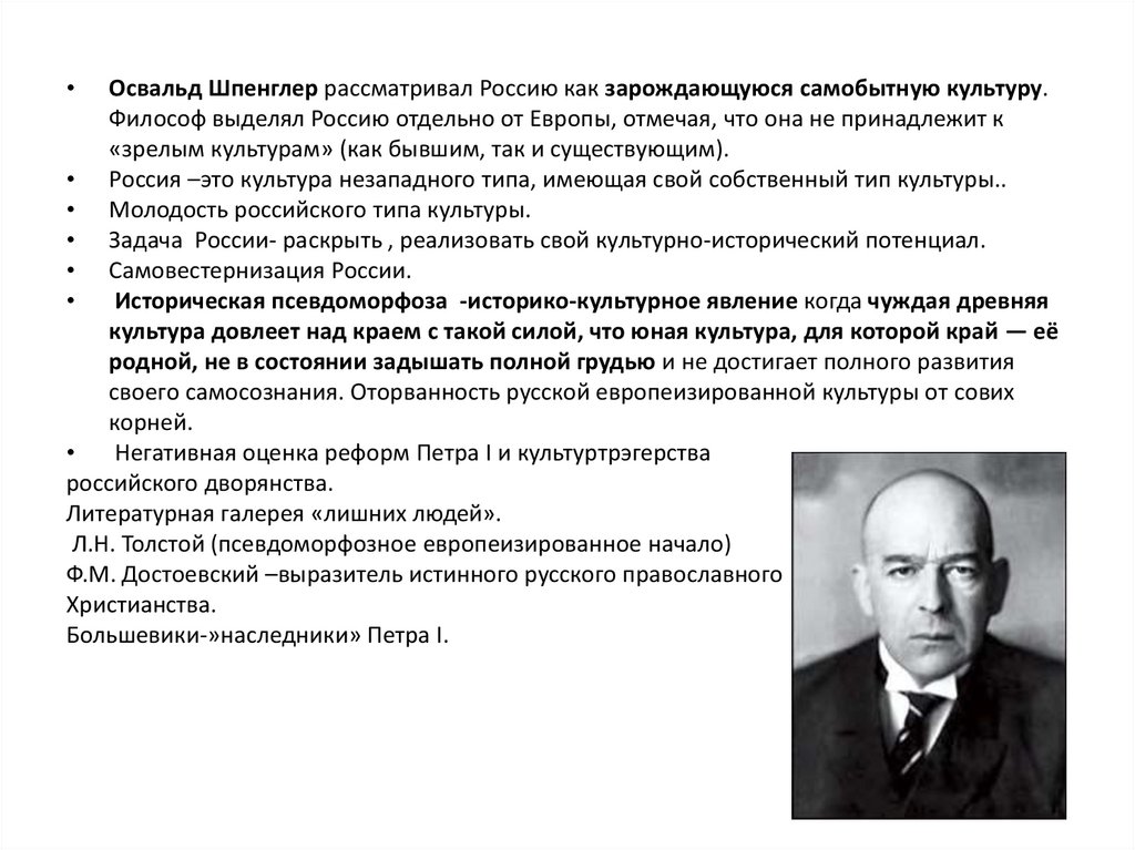 Освальд Шпенглер рассматривал Россию как зарождающуюся самобытную культуру.