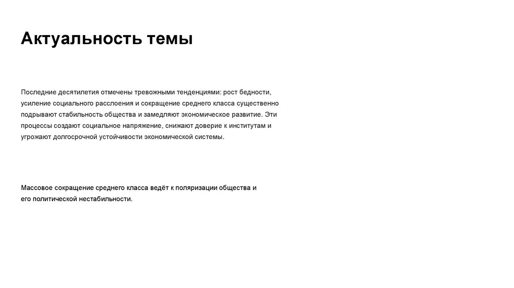 Актуальность темыПоследние десятилетия отмечены тревожными тенденциями: рост бедности,