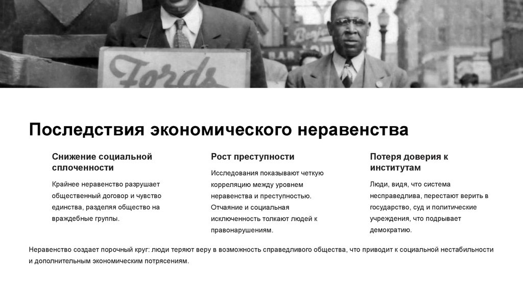 Непреодолимое неравенство порождает конфликты и угрожает целостности общественного устройства.