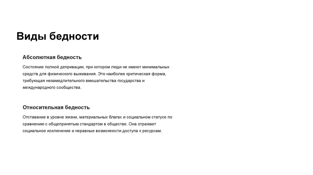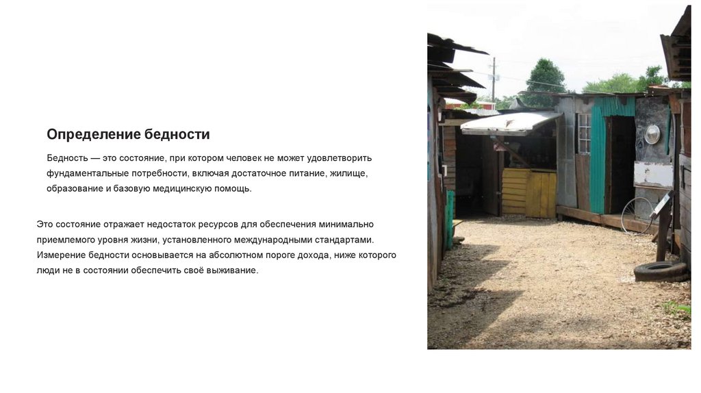 Определение бедностиБедность — это состояние, при котором человек не может удовлетворить