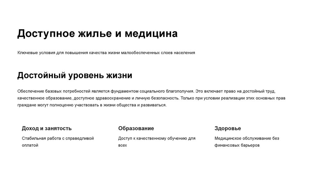 Доступное жилье и медицинаКлючевые условия для повышения качества жизни малообеспеченных слоев населения