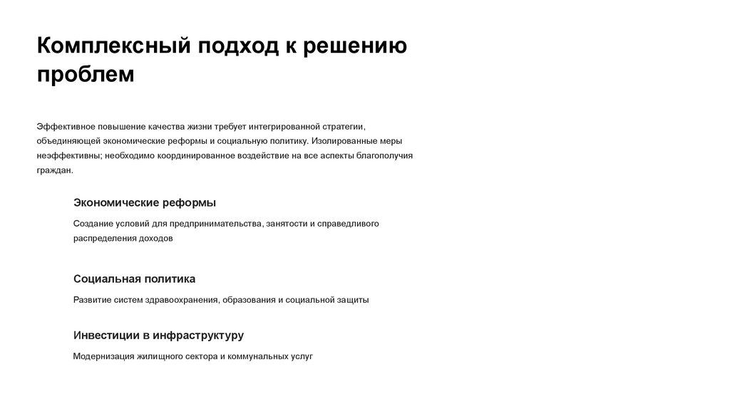 объединяющей экономические реформы и социальную политику. Изолированные меры