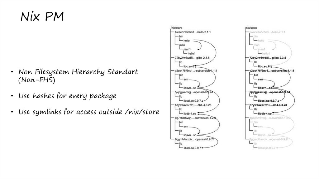 Nix PM• Non Filesystem Hierarchy Standart