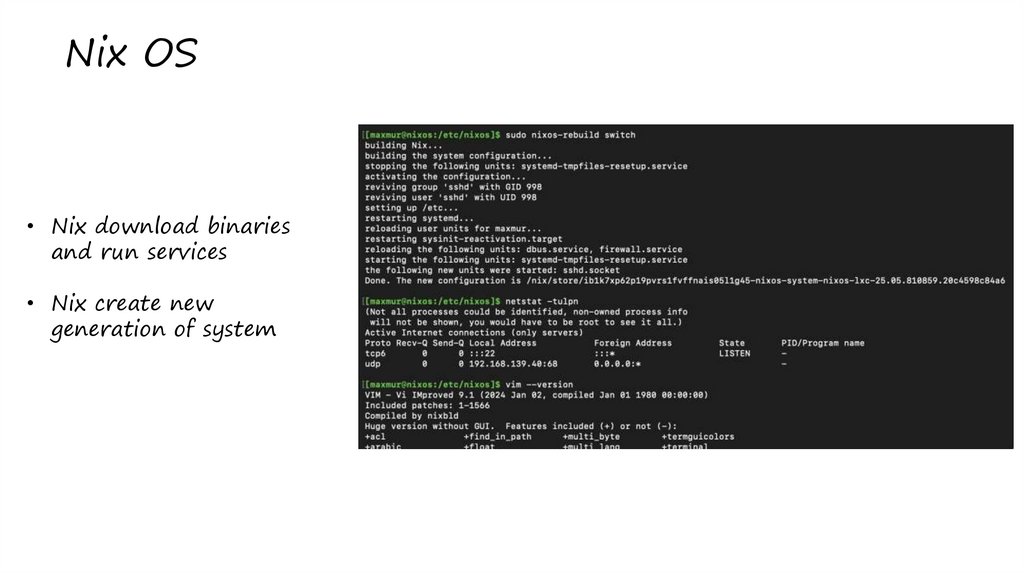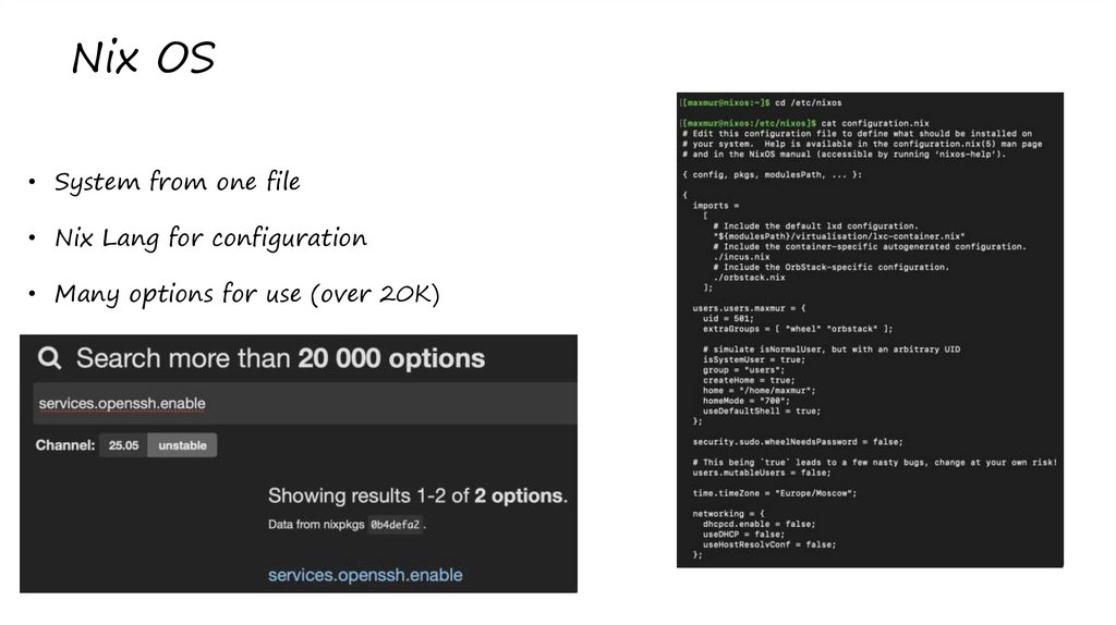 • Nix OS – linux based OS