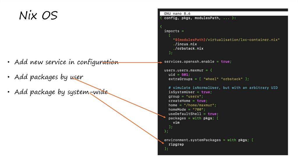 Nix OS• Add new service in configuration