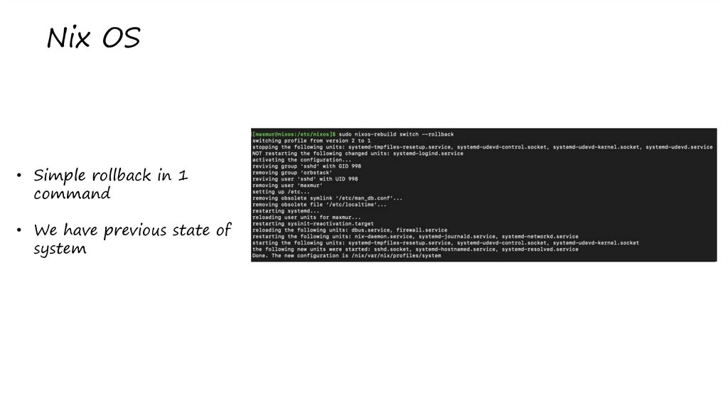 Nix OS• Simple rollback in 1