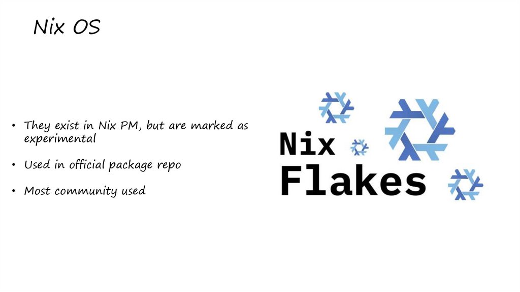 Nix OS• They exist in Nix PM, but are marked as