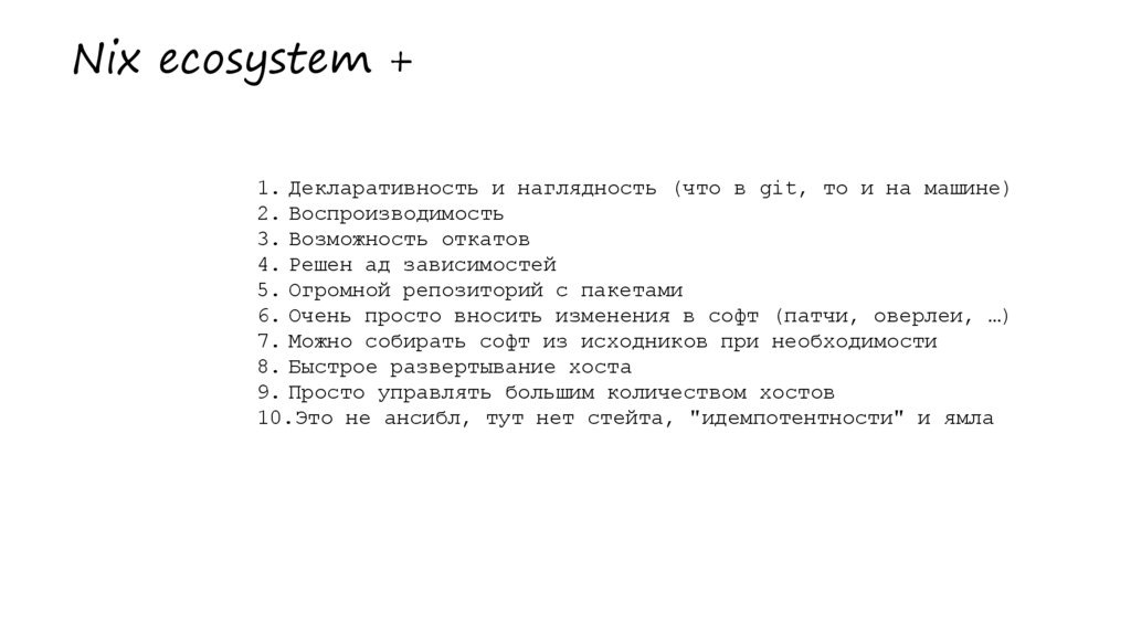 Nix ecosystem +1. Декларативность и наглядность (что в git, то и на машине)