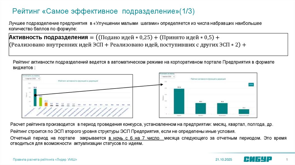 Рейтинг активности подразделений ведется в автоматическом режиме на корпоративном портале Предприятия в формате