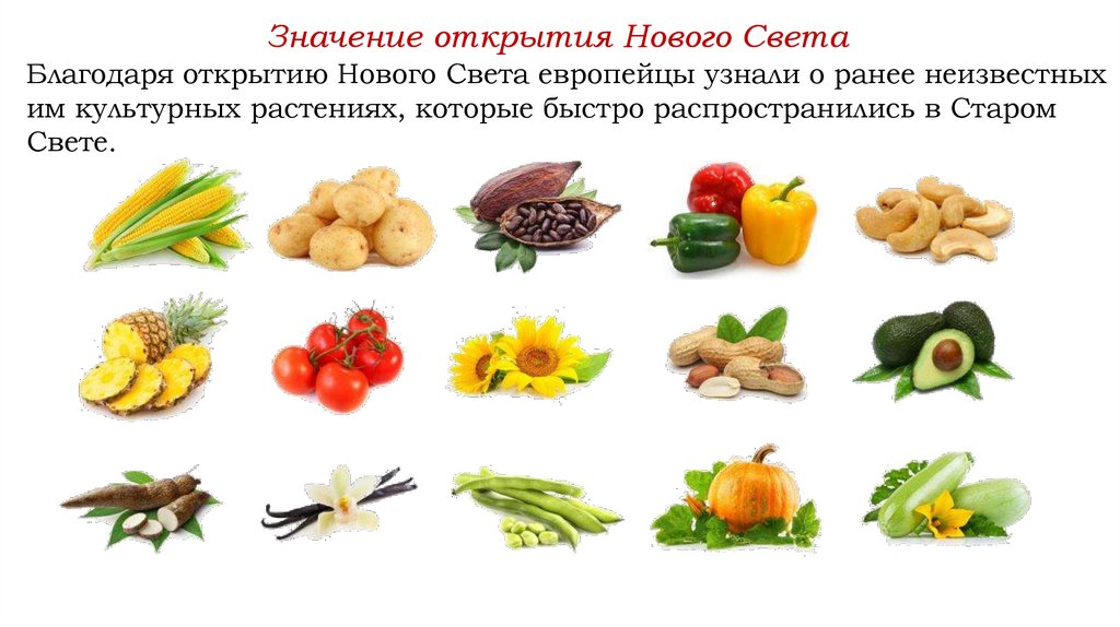 Значение открытия Нового СветаБлагодаря открытию Нового Света европейцы узнали о ранее неизвестных